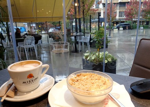 Das Missini-Café, in dem ich sitze, füllt sich, es regnet nach wie vor. Ich habe Kaffee getrunken, ein Mualebi Kadaif gelöffelt, werde bald heimgehen, zurück zum Küchentisch und meinem Roman, der keine Zicke ist, keine Diva, sondern sich Zeit lässt. (Wir sind im Kosovo, sagt er, was willst? Ein bisschen Chaos ist hier völlig normal.)