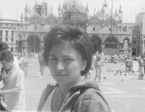 Eines davon zeigt mich auf der Piazza San Marco. War sehr früh am Morgen in die Stadt gekommen, um vor allen anderen allein durch die mir unbekannten Straßen zu laufen. Hatte dafür das offizielle Programm verweigert. Betriebsausflug, zweiter Tag: erst Murano, dann Aufenthalt in Venedig. Für mich kein Murano, gleich Venedig, bis zum Abend. Ciao.