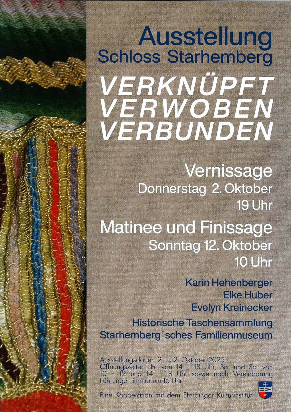 Noch bis 12. Oktober im Eferdinger Schloss Starhemberg zu sehen: Verknüpft – Verwoben – Verbunden | Karin Hehenberger, Elke Huber und Evelyn Kreinecker