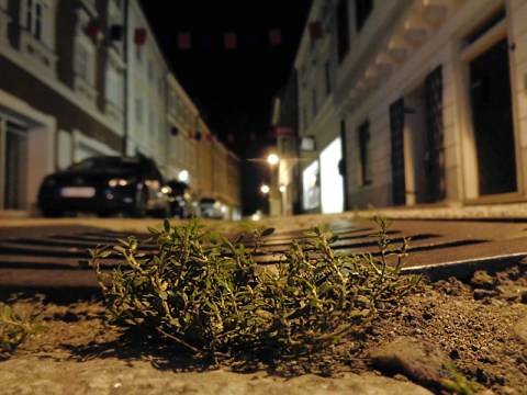 Ich leg die Kamera mitten hin. Kommt eh kein Auto. Viertelstundenlang keins. Selbstauslöser. Mach du, sag ich. Die Kamera macht. Passt? Fragt sie. Ich sag: Passt.