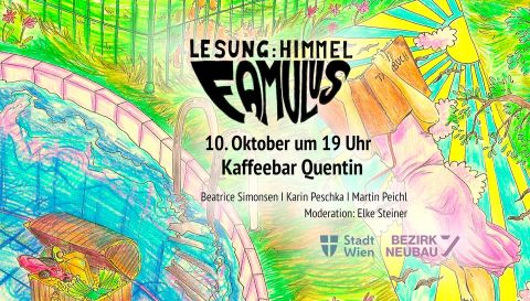 Im Rahmen der Famulus Caféhaus Lesungen lesen Beatrice Simonsen, Martin Peichl und ich am kommenden Dienstag in der Kaffeebar Quentin, eingeladen und moderiert von Elke Steiner. Das Thema Himmel ist spannend – und findet sich auch in Dschomba ganz bestimmt.